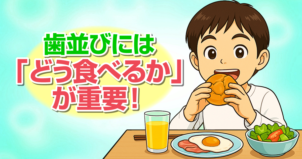 歯並びに影響する習慣は、普段の食生活の中にも潜んでいます。食事というと栄養バランスばかりに目が行きがちですが、「どう食べるか」もあごの成長や将来の歯並びを大きく左右します。特に、次のような食べ方には注意が必要です。